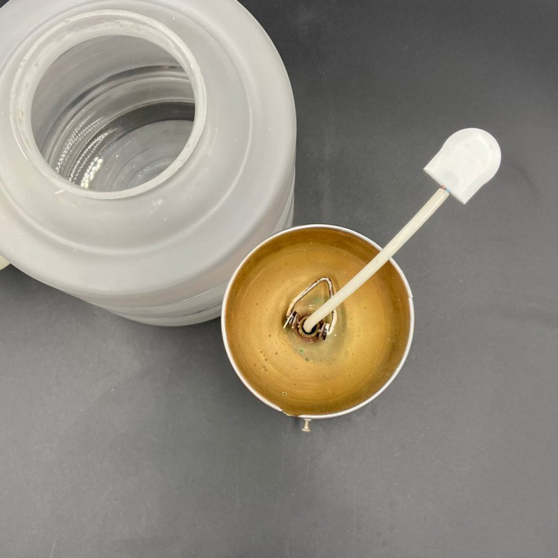 Lighting fixtures in uranium glass of this size and sculptural quality are increasingly difficult to source, especially in complete and well-preserved condition.
