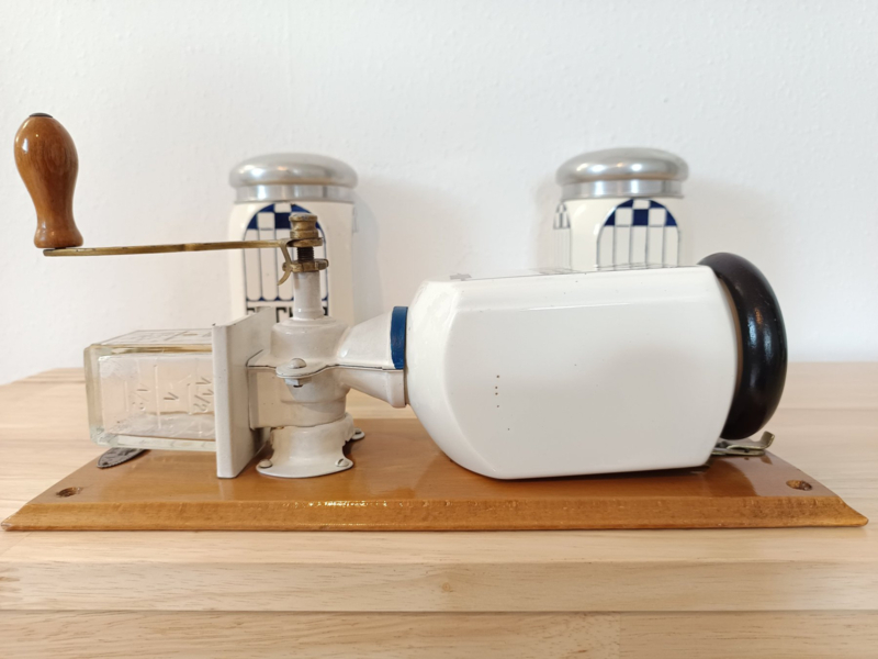 Authentic Vintage Wall Coffee Grinder with Porcelain Hopper – K&M – Fine European Kitchen Antique