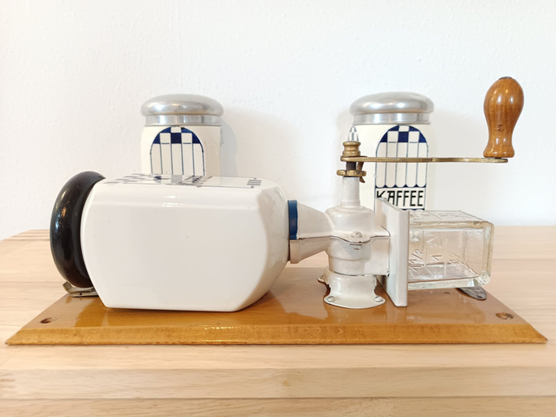 Een mooie set Art Deco/Jugenstil wand koffiemolen.